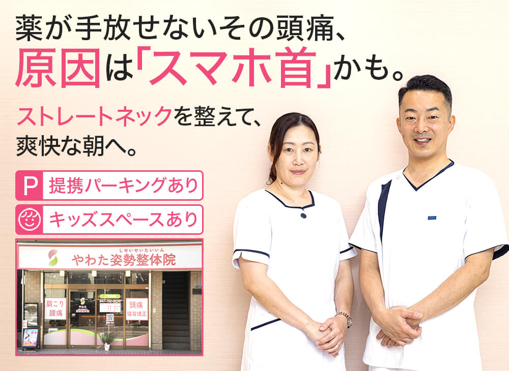 なぜ、鎮痛剤を飲み続けたり、肩をマッサージしてもその頭痛は繰り返されるのでしょうか?その理由は、首の骨のカーブが消失し、頭の重さを分散できなくなっている「ストレートネック」にあります。
